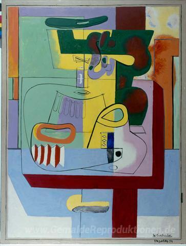 Wir bieten Ihnen eine handgefertigte Reproduktion auf Leinwand des berühmten Kunstwerks 'Nature morte Vézelay' von Le Corbusier, aus dem Reproduktionsmuseum.
