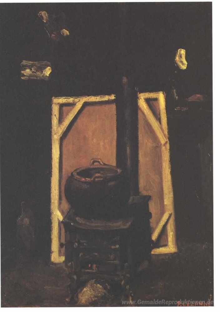 Wir bieten Ihnen eine handgefertigte Reproduktion auf Leinwand des berühmten Kunstwerks 'Ofen im Atelier' von Paul Cezanne, aus dem Reproduktionsmuseum.