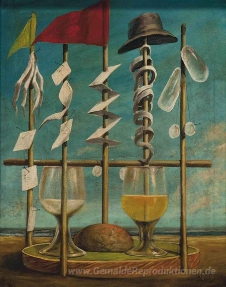 Wir bieten Ihnen eine handgefertigte Reproduktion auf Leinwand des berühmten Kunstwerks 'Ohne Titel' von Pierre Roy, aus dem Reproduktionsmuseum.