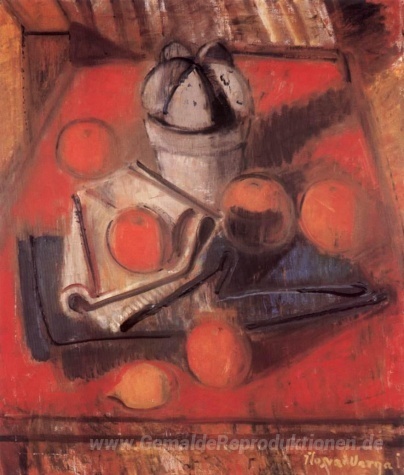 Wir bieten Ihnen eine handgefertigte Reproduktion auf Leinwand des berühmten Kunstwerks 'Orangen und Cactus' von Istvan Ilosvai Varga, aus dem Reproduktionsmuseum.