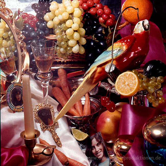 Wir bieten Ihnen eine handgefertigte Reproduktion auf Leinwand des berühmten Kunstwerks 'Parrots Live Forever' von Audrey Flack, aus dem Reproduktionsmuseum.