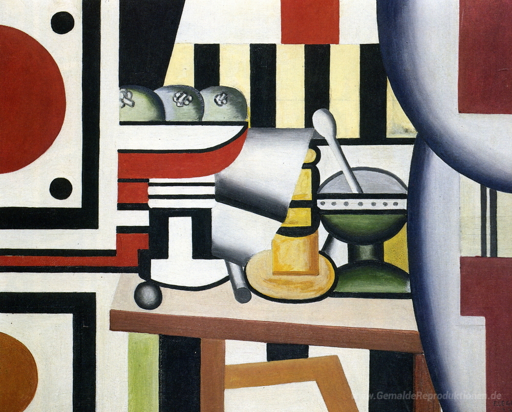 Wir bieten Ihnen eine handgefertigte Reproduktion auf Leinwand des berühmten Kunstwerks 'Pear Compotoir' von Fernand Leger, aus dem Reproduktionsmuseum.