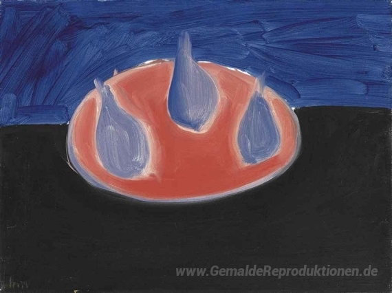Wir bieten Ihnen eine handgefertigte Reproduktion auf Leinwand des berühmten Kunstwerks 'Poires sur une assiette stieg' von Nicolas de Staël, aus dem Reproduktionsmuseum.