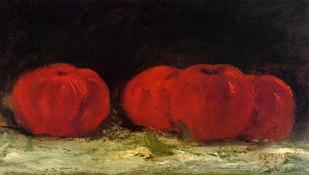 Wir bieten Ihnen eine handgefertigte Reproduktion auf Leinwand des berühmten Kunstwerks 'Rote Äpfel' von Gustave Courbet, aus dem Reproduktionsmuseum.