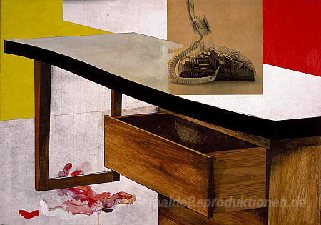 Wir bieten Ihnen eine handgefertigte Reproduktion auf Leinwand des berühmten Kunstwerks 'Schreibtisch' von Richard Hamilton, aus dem Reproduktionsmuseum.