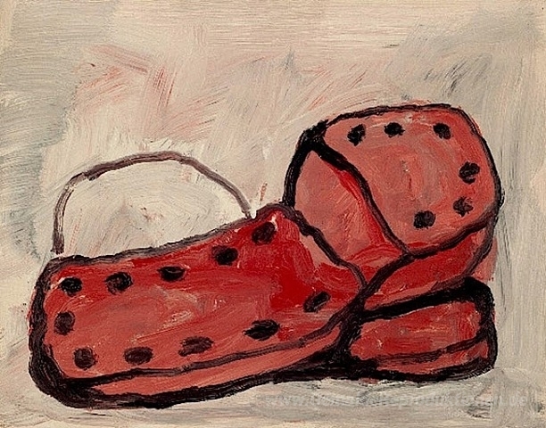Wir bieten Ihnen eine handgefertigte Reproduktion auf Leinwand des berühmten Kunstwerks 'Schuhe' von Philip Guston, aus dem Reproduktionsmuseum.