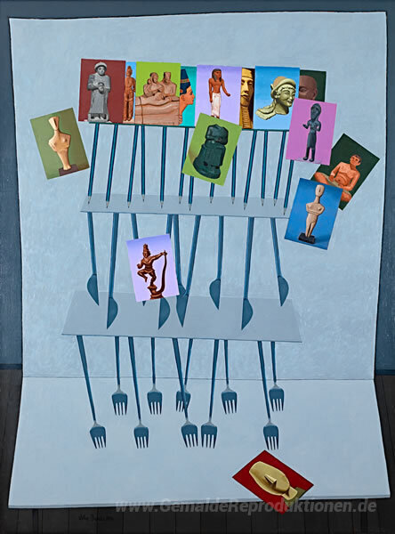 Wir bieten Ihnen eine handgefertigte Reproduktion auf Leinwand des berühmten Kunstwerks 'Souvenirs' von John Brack, aus dem Reproduktionsmuseum.