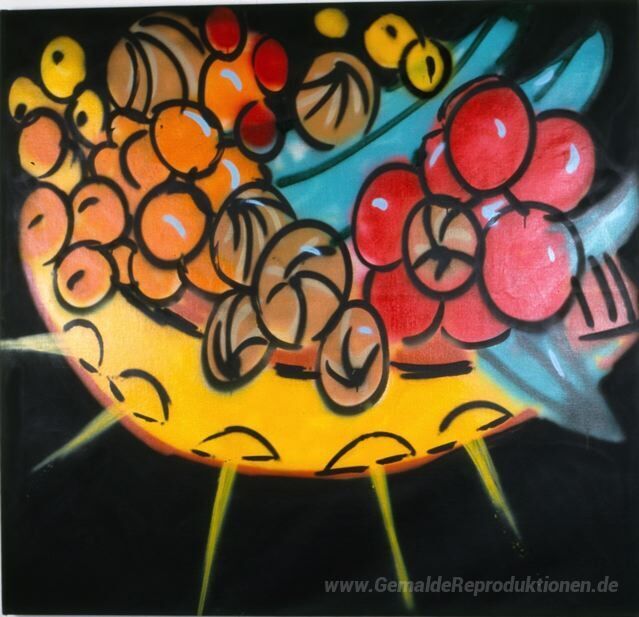 Wir bieten Ihnen eine handgefertigte Reproduktion auf Leinwand des berühmten Kunstwerks 'Still Life In Space' von Fab 5 Freddy, aus dem Reproduktionsmuseum.
