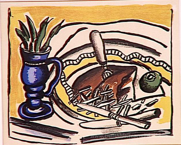 Wir bieten Ihnen eine handgefertigte Reproduktion auf Leinwand des berühmten Kunstwerks 'Stilleben mit blauer Vase (die Roosbeef)' von Fernand Leger, aus dem Reproduktionsmuseum.