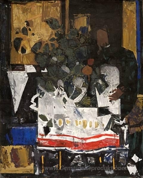 Wir bieten Ihnen eine handgefertigte Reproduktion auf Leinwand des berühmten Kunstwerks 'Stilleben mit Figur' von Dimitris Mytaras, aus dem Reproduktionsmuseum.