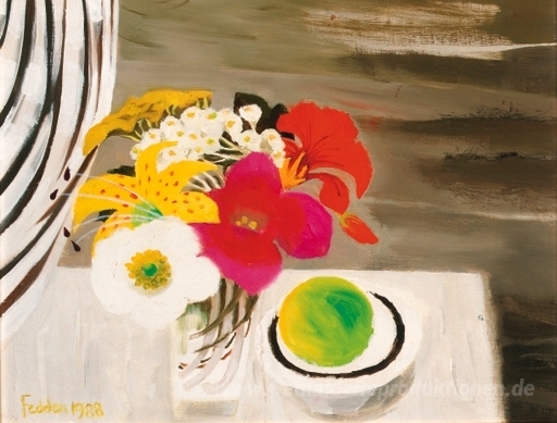 Willkommen in der faszinierenden Welt der Ölgemälde, in der Kunst und Emotion auf einzigartige Weise verschmelzen. Unsere Sammlung präsentiert Meisterwerke wie das Stilleben mit Früchten und Blumen von der renommierten Künstlerin Mary Fedden. Fedden, bekannt für ihre dynamischen Farbpaletten und detailreichen Kompositionen, schafft mit ihrem unverwechselbaren Stil eine behagliche und einladende Atmosphäre in jedem Raum.