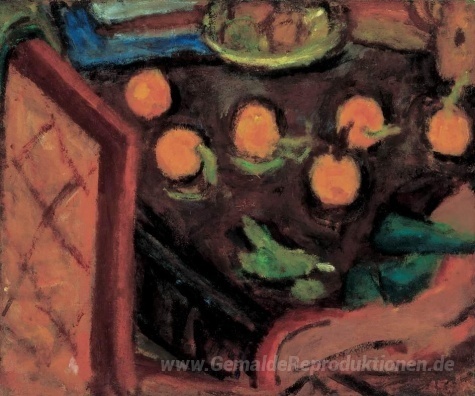 Wir bieten Ihnen eine handgefertigte Reproduktion auf Leinwand des berühmten Kunstwerks 'Stilleben mit Orangen' von Bela Czobel, aus dem Reproduktionsmuseum.