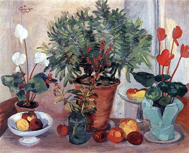 Wir bieten Ihnen eine handgefertigte Reproduktion auf Leinwand des berühmten Kunstwerks 'Stillleben (Cyclamen)' von Martiros Saryan, aus dem Reproduktionsmuseum.