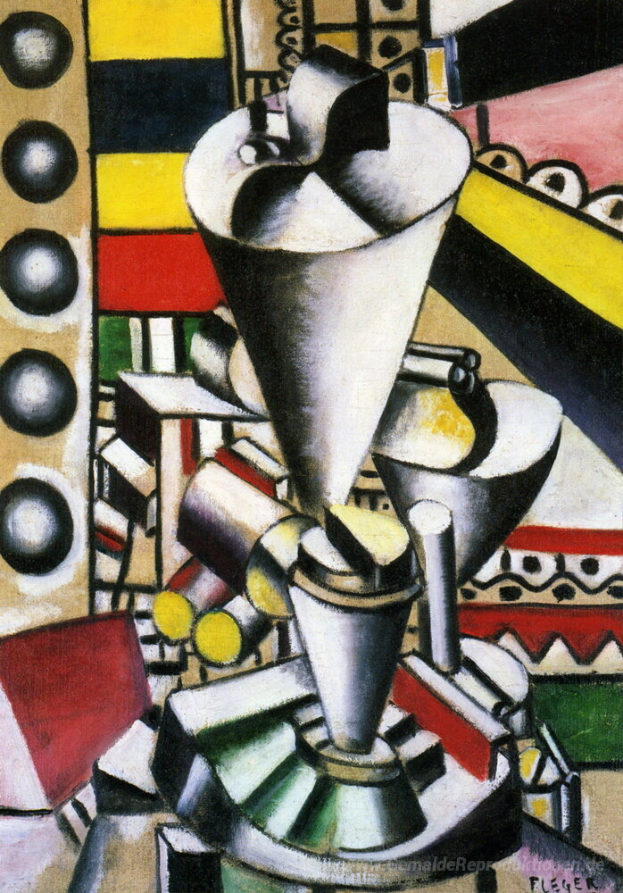 Wir bieten Ihnen eine handgefertigte Reproduktion auf Leinwand des berühmten Kunstwerks 'Stillleben in der Maschinenelemente' von Fernand Leger, aus dem Reproduktionsmuseum.
