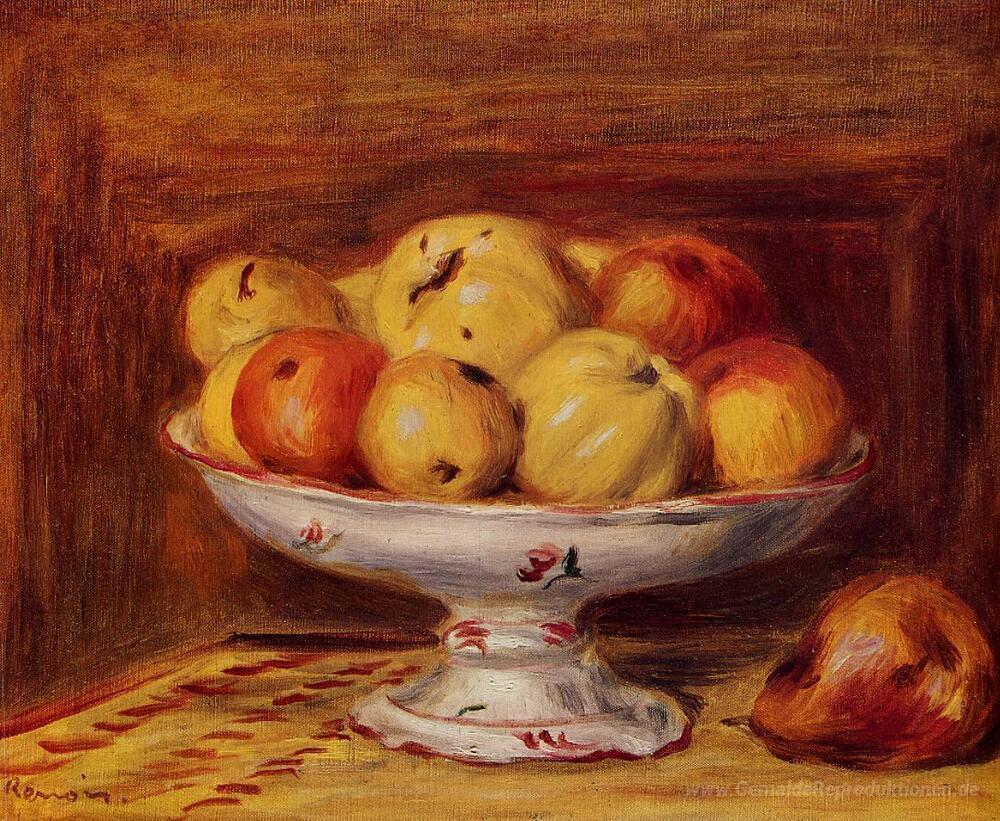 Wir bieten Ihnen eine handgefertigte Reproduktion auf Leinwand des berühmten Kunstwerks 'Stillleben mit Äpfeln und Birnen' von Pierre-Auguste Renoir, aus dem Reproduktionsmuseum.