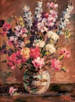 Wir bieten Ihnen eine handgefertigte Reproduktion auf Leinwand des berühmten Kunstwerks 'Stillleben mit Blumen' von Gregoire Boonzaier, aus dem Reproduktionsmuseum.