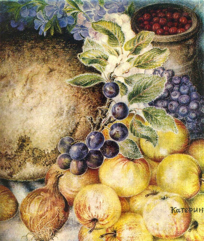 Wir bieten Ihnen eine handgefertigte Reproduktion auf Leinwand des berühmten Kunstwerks 'Stillleben mit Brot' von Kateryna Bilokur, aus dem Reproduktionsmuseum.