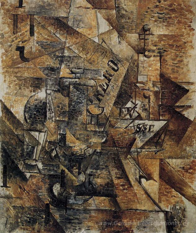 Wir bieten Ihnen eine handgefertigte Reproduktion auf Leinwand des berühmten Kunstwerks 'Stillleben mit einem Paar von Banderillas' von Georges Braque, aus dem Reproduktionsmuseum.