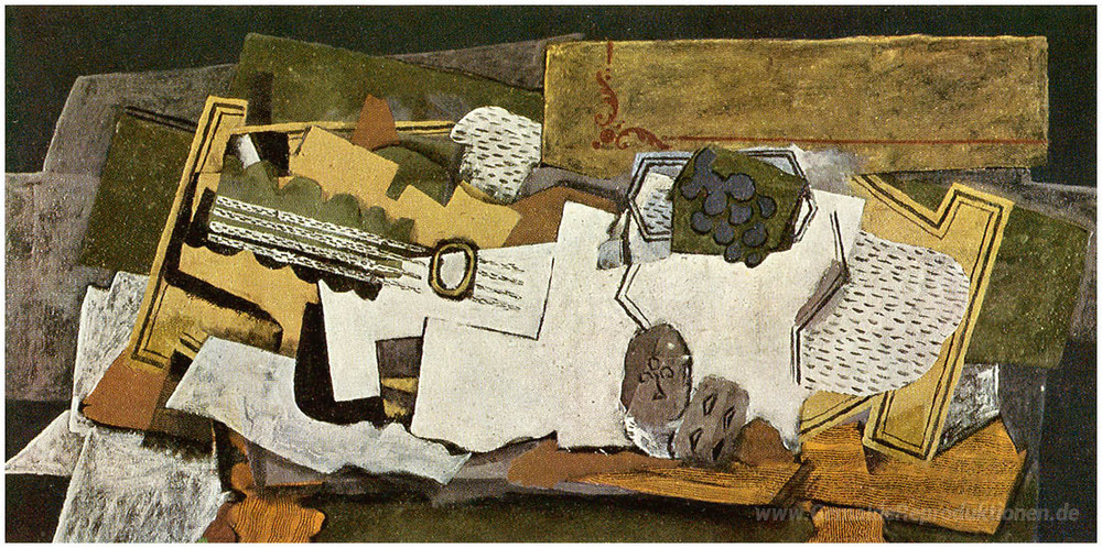 Wir bieten Ihnen eine handgefertigte Reproduktion auf Leinwand des berühmten Kunstwerks 'Stillleben mit einer Gitarre' von Georges Braque, aus dem Reproduktionsmuseum.