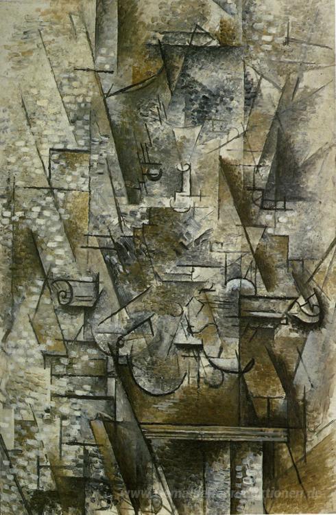 Wir bieten Ihnen eine handgefertigte Reproduktion auf Leinwand des berühmten Kunstwerks 'Stillleben mit einer Violine' von Georges Braque, aus dem Reproduktionsmuseum.