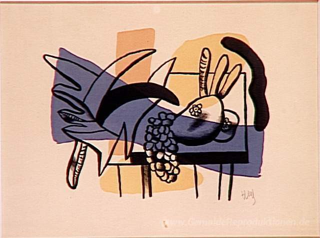 Wir bieten Ihnen eine handgefertigte Reproduktion auf Leinwand des berühmten Kunstwerks 'Stillleben mit Früchten' von Fernand Leger, aus dem Reproduktionsmuseum.