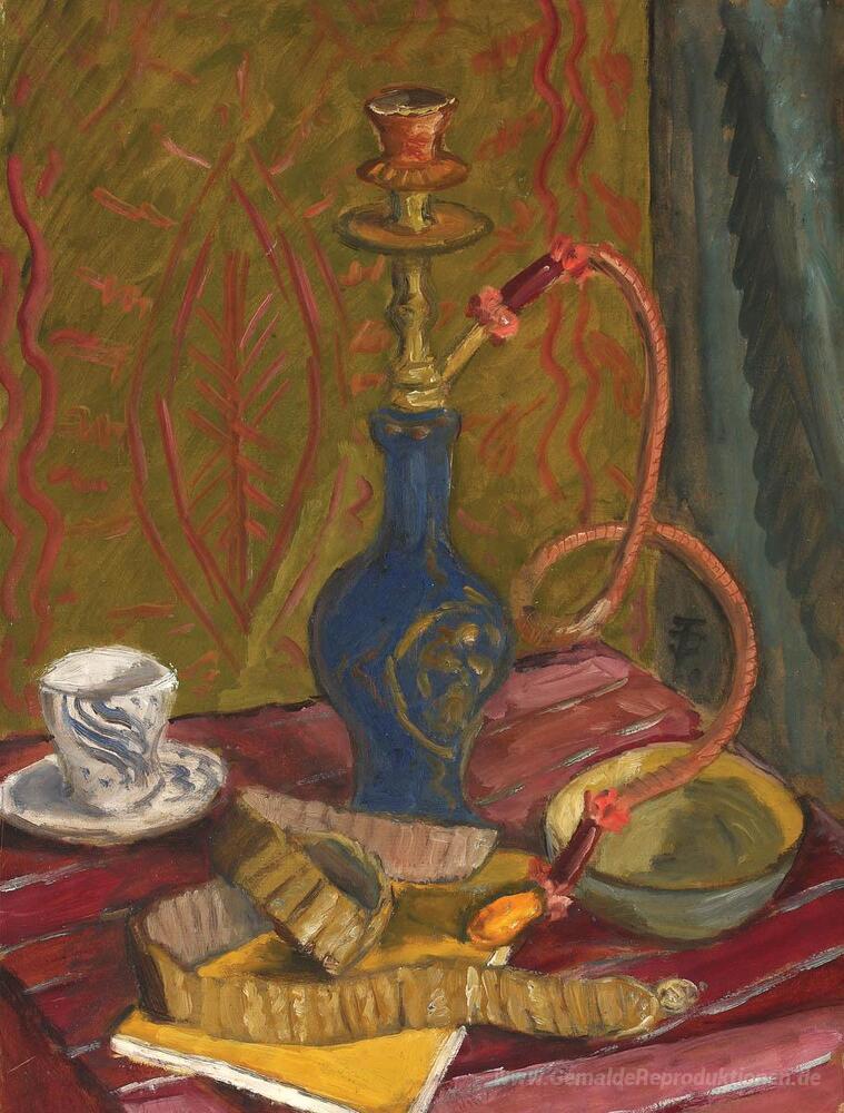 Wir bieten Ihnen eine handgefertigte Reproduktion auf Leinwand des berühmten Kunstwerks 'Stillleben mit Hubble-Bubble-' von Theodor Pallady, aus dem Reproduktionsmuseum.