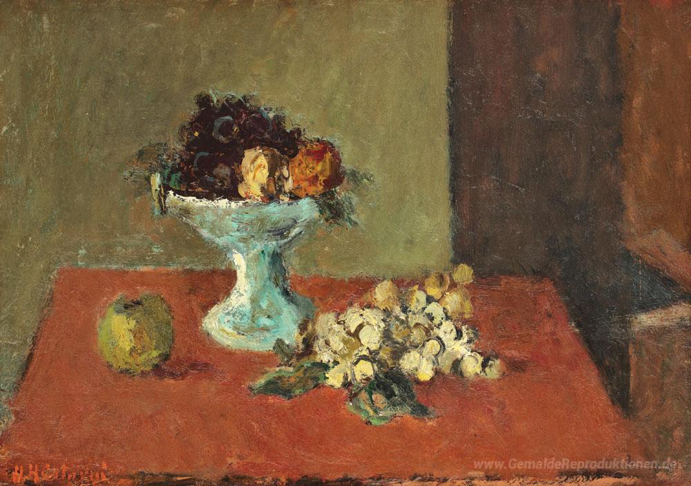 Wir bieten Ihnen eine handgefertigte Reproduktion auf Leinwand des berühmten Kunstwerks 'Stillleben mit Obst' von Henri Catargi, aus dem Reproduktionsmuseum.