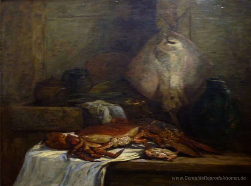 Wir bieten Ihnen eine handgefertigte Reproduktion auf Leinwand des berühmten Kunstwerks 'Stillleben mit Skate' von Eugene Boudin, aus dem Reproduktionsmuseum.