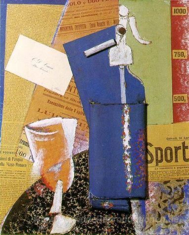 Wir bieten Ihnen eine handgefertigte Reproduktion auf Leinwand des berühmten Kunstwerks 'Stillleben mit Syphon Sodawasser' von Carlo Carra, aus dem Reproduktionsmuseum.