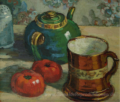 Wir bieten Ihnen eine handgefertigte Reproduktion auf Leinwand des berühmten Kunstwerks 'Stillleben mit Teekanne' von Gregoire Boonzaier, aus dem Reproduktionsmuseum.