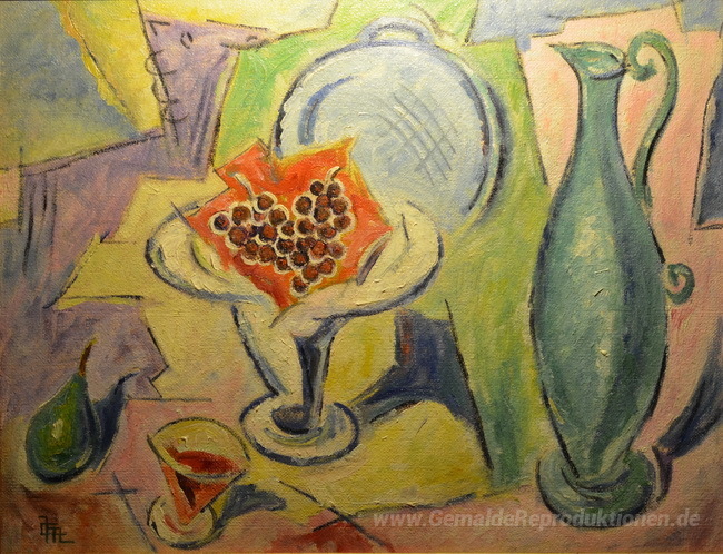 Wir bieten Ihnen eine handgefertigte Reproduktion auf Leinwand des berühmten Kunstwerks 'Stillleben mit Trauben und Karaffe' von Corneliu Michailescu, aus dem Reproduktionsmuseum.
