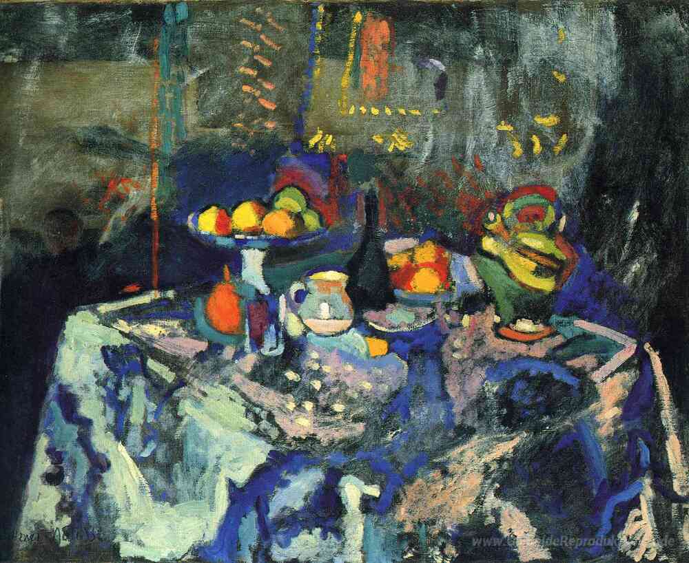 Willkommen in der Welt der Ölgemälde, wo Kunst und Emotionen auf einzigartige Weise miteinander verwoben sind. Hier präsentieren wir Ihnen exquisite Werke von herausragenden Künstlern, die das Potenzial haben, jedem Raum eine besondere Atmosphäre zu verleihen. Unter unseren Meisterwerken befindet sich das faszinierende Stillleben mit Vase, Flasche und Obst von Henri Matisse. Der Meister, bekannt für seine experimentierfreudigen Farbpaletten und dynamischen Kompositionen, schafft mit diesem Werk eine harmonische Verbindung zwischen Form und Farbe.