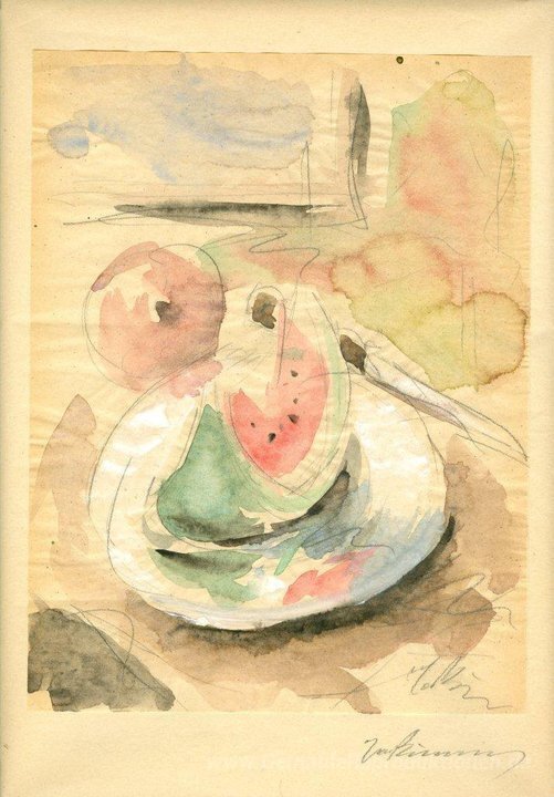 Wir bieten Ihnen eine handgefertigte Reproduktion auf Leinwand des berühmten Kunstwerks 'Stillleben mit Wassermelone' von George Bouzianis, aus dem Reproduktionsmuseum.