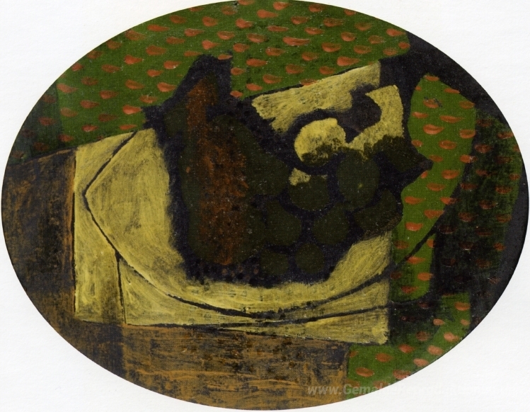 Wir bieten Ihnen eine handgefertigte Reproduktion auf Leinwand des berühmten Kunstwerks 'Stillleben mit Weintrauben' von Georges Braque, aus dem Reproduktionsmuseum.
