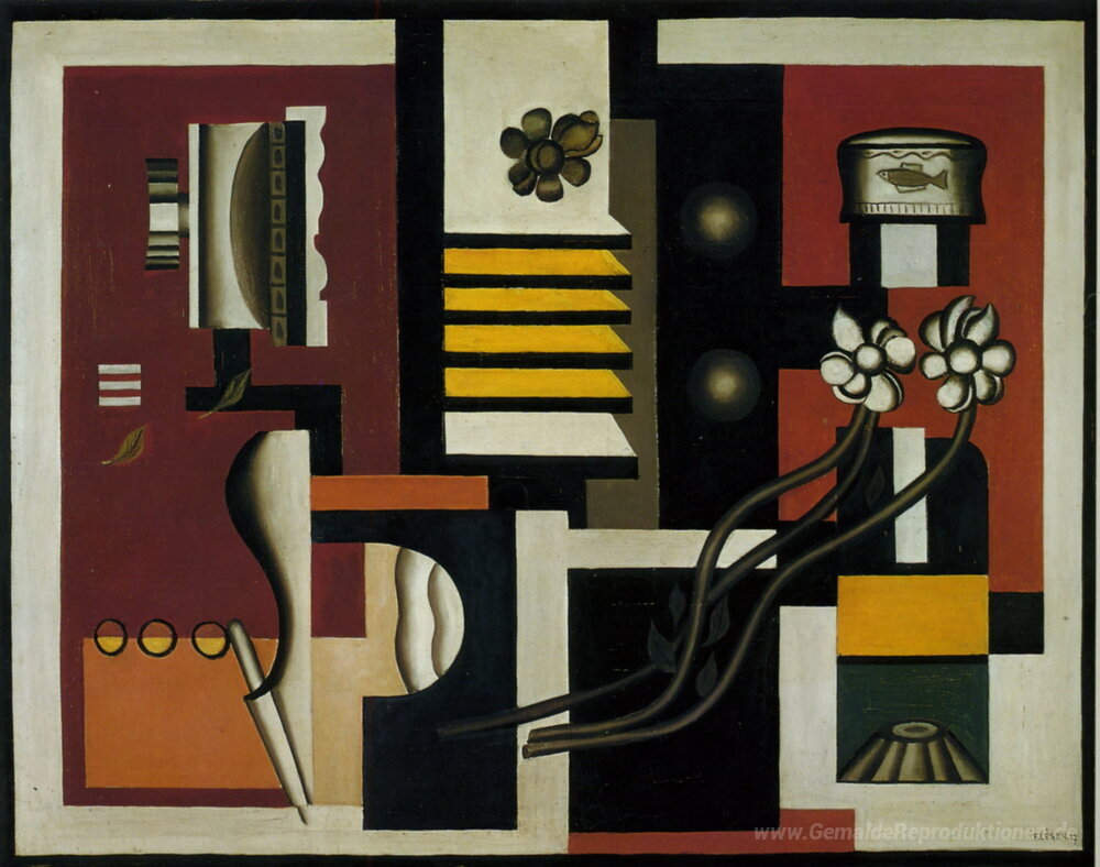 Wir bieten Ihnen eine handgefertigte Reproduktion auf Leinwand des berühmten Kunstwerks 'Stillleben' von Fernand Leger, aus dem Reproduktionsmuseum.