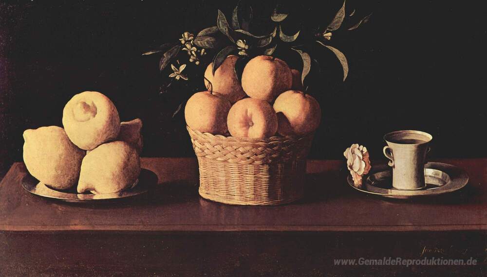 Wir bieten Ihnen eine handgefertigte Reproduktion auf Leinwand des berühmten Kunstwerks 'Stillleben' von Francisco de Zurbaran, aus dem Reproduktionsmuseum.