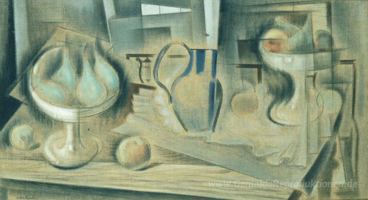 Wir bieten Ihnen eine handgefertigte Reproduktion auf Leinwand des berühmten Kunstwerks 'Stillleben' von Konstantinos Parthenis, aus dem Reproduktionsmuseum.