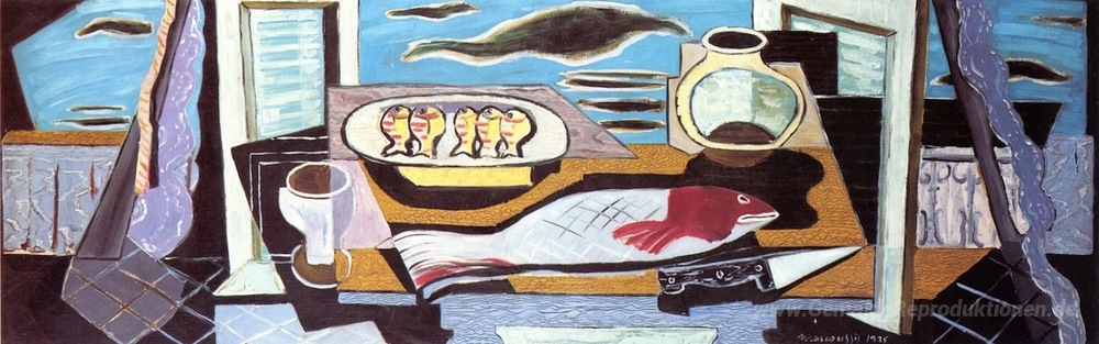Wir bieten Ihnen eine handgefertigte Reproduktion auf Leinwand des berühmten Kunstwerks 'Stillleben' von Louis Marcoussis, aus dem Reproduktionsmuseum.