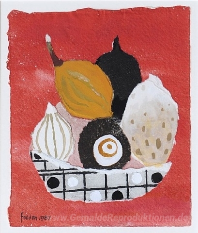Wir bieten Ihnen eine handgefertigte Reproduktion auf Leinwand des berühmten Kunstwerks 'Stillleben' von Mary Fedden, aus dem Reproduktionsmuseum.