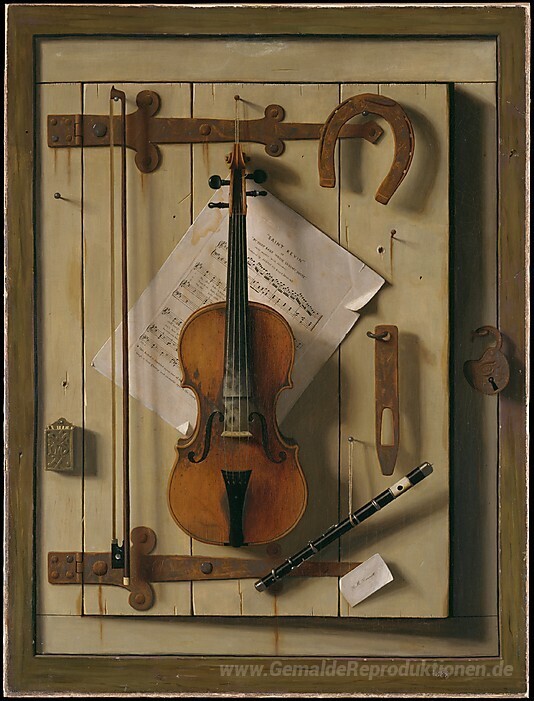 Wir bieten Ihnen eine handgefertigte Reproduktion auf Leinwand des berühmten Kunstwerks 'Stillleben-Violine und Musik' von William Michael Harnett, aus dem Reproduktionsmuseum.