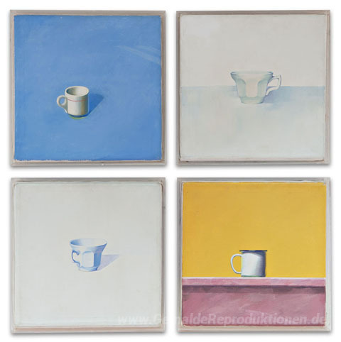 Wir bieten Ihnen eine handgefertigte Reproduktion auf Leinwand des berühmten Kunstwerks 'Tasse' von Dale Hickey, aus dem Reproduktionsmuseum.