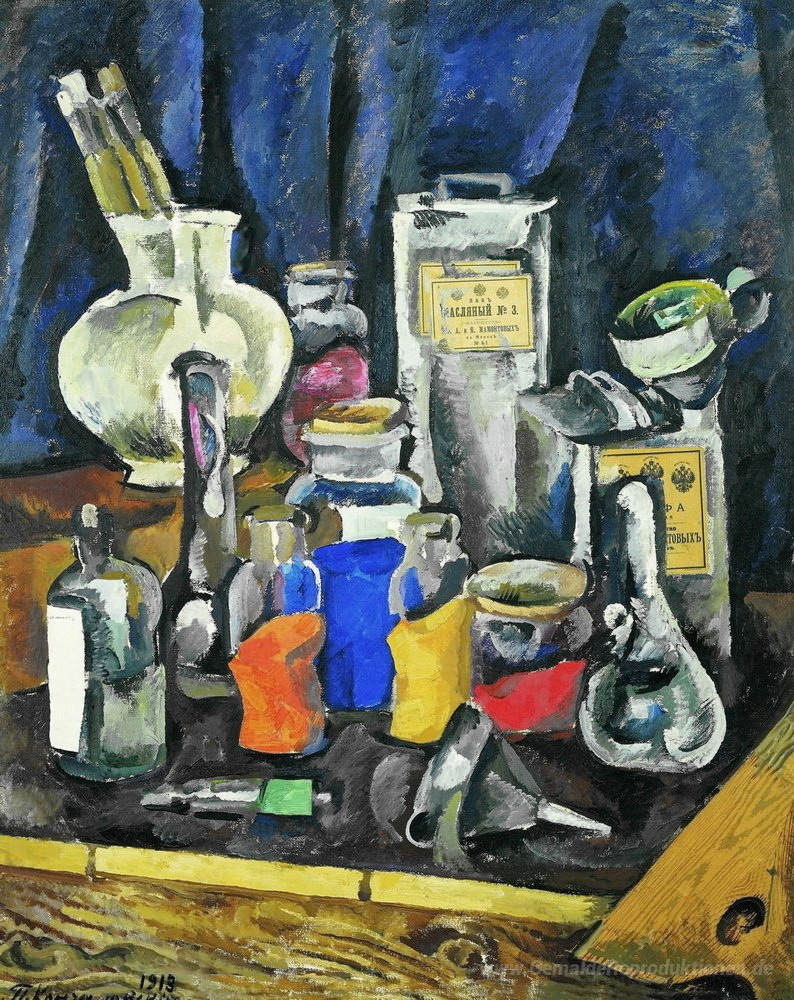 Wir bieten Ihnen eine handgefertigte Reproduktion auf Leinwand des berühmten Kunstwerks 'Trockenfarben' von Pyotr Konchalovsky, aus dem Reproduktionsmuseum.
