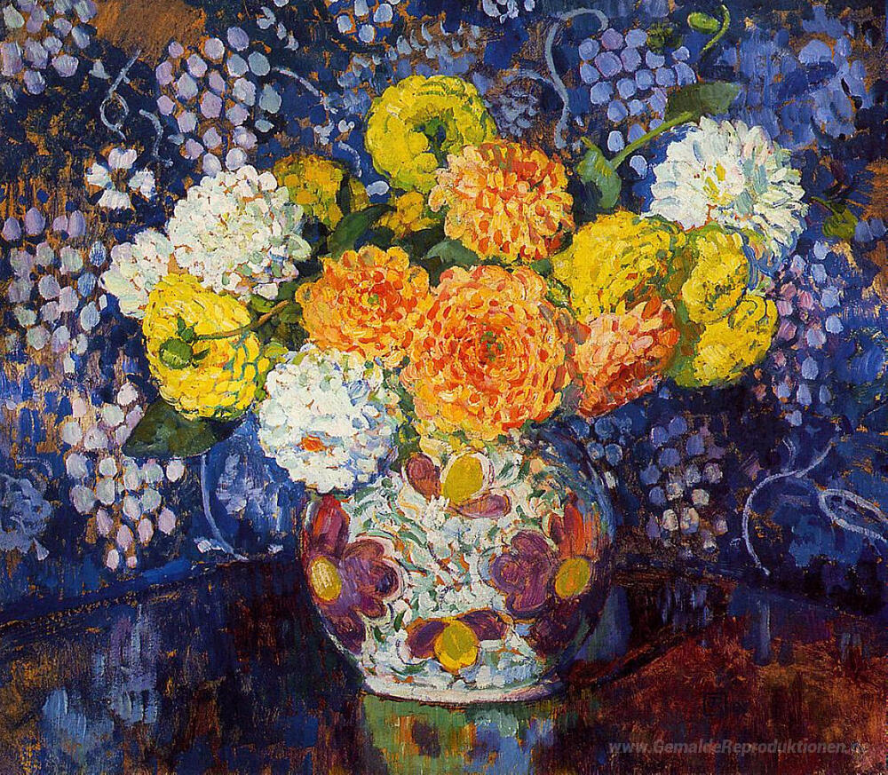 Wir bieten Ihnen eine handgefertigte Reproduktion auf Leinwand des berühmten Kunstwerks 'Vase of Flowers' von Theo van Rysselberghe, aus dem Reproduktionsmuseum.