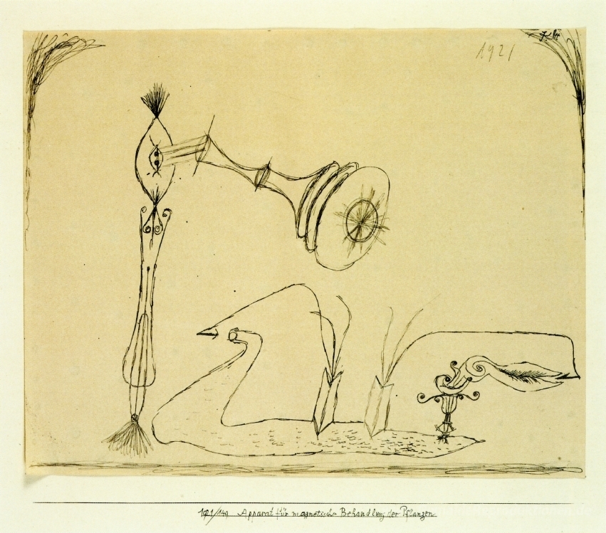 Wir bieten Ihnen eine handgefertigte Reproduktion auf Leinwand des berühmten Kunstwerks 'Vorrichtung zur magnetischen Behandlung von Pflanzen' von Paul Klee, aus dem Reproduktionsmuseum.