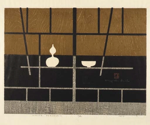 Wir bieten Ihnen eine handgefertigte Reproduktion auf Leinwand des berühmten Kunstwerks 'Weiße Porzellan' von Kiyoshi Saito, aus dem Reproduktionsmuseum.