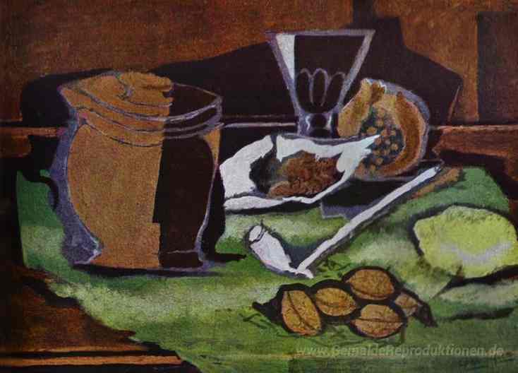 Jedes Ölgemälde in unserem Sortiment wurde mit höchster Sorgfalt und Leidenschaft geschaffen. Die sorgfältige Auswahl der Farben und die meisterhaft umgesetzten Techniken erzeugen eine einladende Atmosphäre, die Ihr Zuhause bereichert. Mit der eleganten Präsenz dieses Kunstwerks können Sie nicht nur Ihren Raum verschönern, sondern auch emotionale Akzente setzen, die Ihre Gäste sicherlich beeindrucken werden. Erleben Sie die Kraft der künstlerischen Inspiration und lassen Sie Zitrone, Nüssen und Topf mit Tabak von Georges Braque Teil Ihres Lebensraums werden.