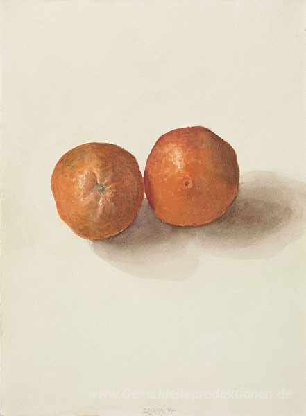 Wir bieten Ihnen eine handgefertigte Reproduktion auf Leinwand des berühmten Kunstwerks 'Zwei Orangen' von Avigdor Arikha, aus dem Reproduktionsmuseum.