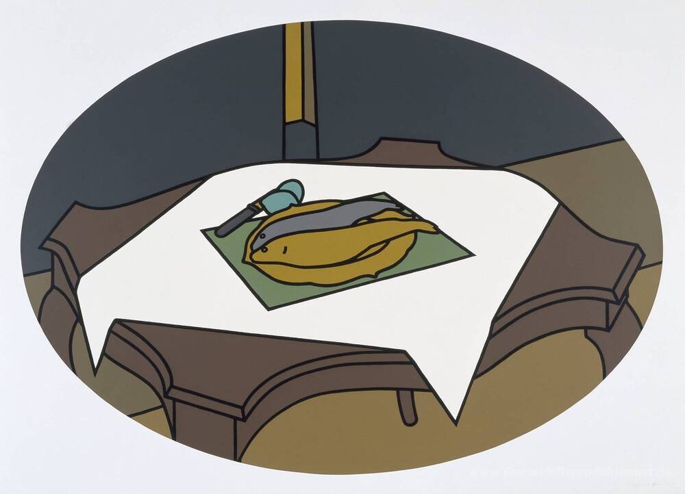Wir bieten Ihnen eine handgefertigte Reproduktion auf Leinwand des berühmten Kunstwerks 'Zwei Whiting' von Patrick Caulfield, aus dem Reproduktionsmuseum.