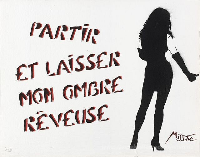 Wir bieten Ihnen eine handgefertigte Reproduktion auf Leinwand des berühmten Kunstwerks 'Partier et laisser mon ombre rêveuse' von Miss.Tic, aus dem Reproduktionsmuseum.