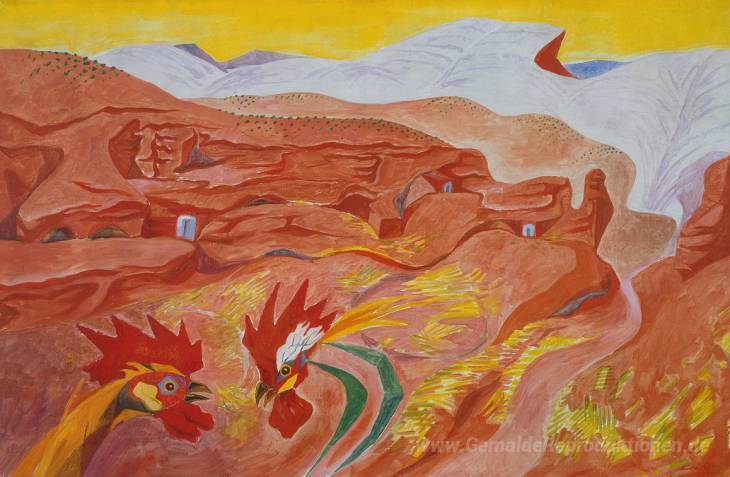 Wir bieten Ihnen eine handgefertigte Reproduktion auf Leinwand des berühmten Kunstwerks 'Ibdes in Aragon' von Andre Masson, aus dem Reproduktionsmuseum.